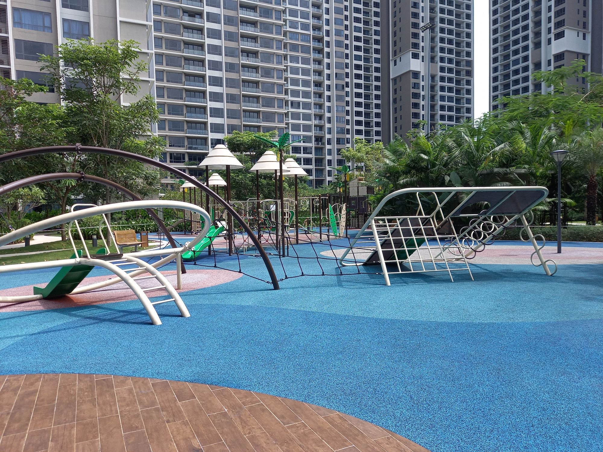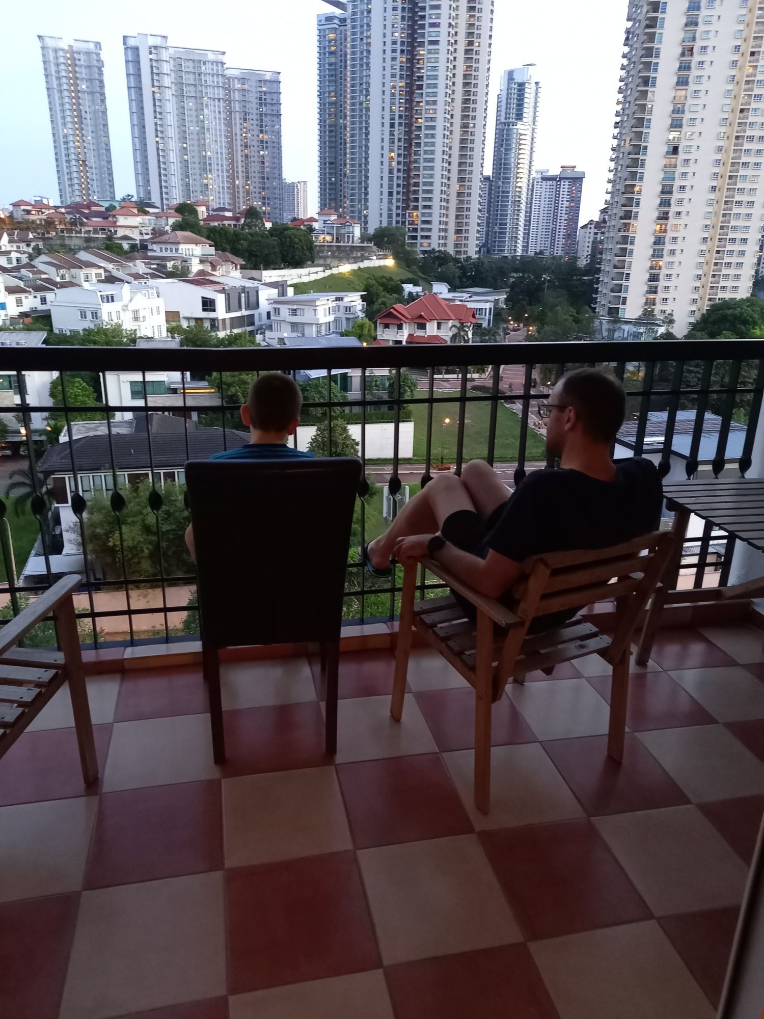 Am nächsten Tag (Dienstag) war in Malaysia Feiertag. Somit konnten wir ausschlafen und alle zusammen gemütlich frühstücken. Danach ging es eine Runde spazieren. Gleich um die Ecke stehen die Häuser in denen wir uns für eine Wohnung interessieren. Also sind wir dort hin gelaufen und haben uns die Straße sowie die Umgebung dort mal etwas genauer angeschaut. Außerdem haben wir hier am Apartment den Garten und den Pool (wegen Corona leider gesperrt) besichtigt. Vor allem Lars hofft, dass wir ganz bald in den Pool springen können. Aber immerhin konnte er etwas auf dem Spielplatz klettern und wippen.